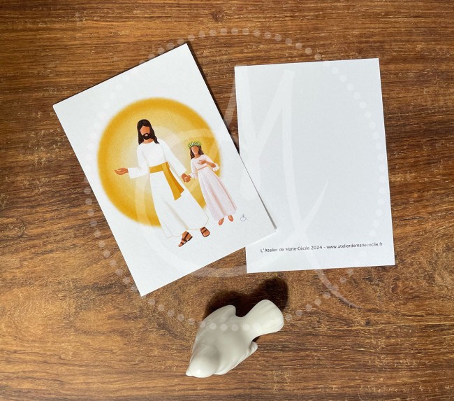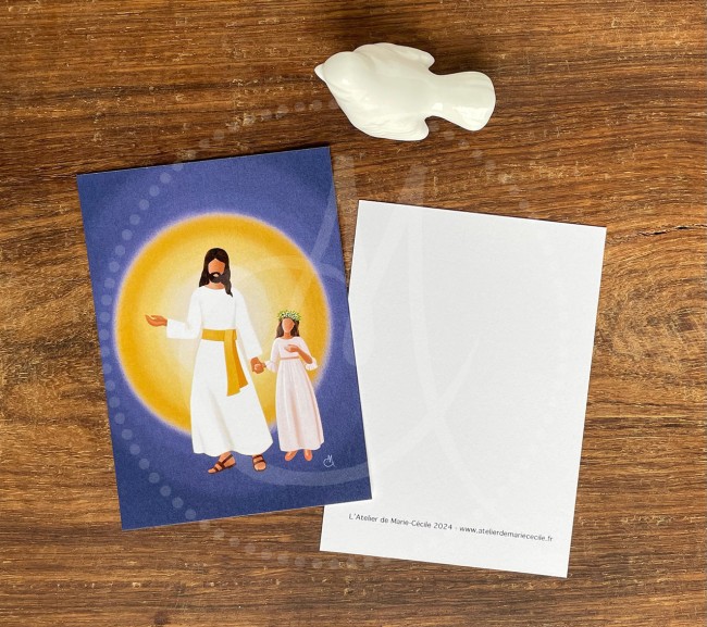 Lot de 10 cartes de Première Communion "Jésus et petite fille" - fond blanc
